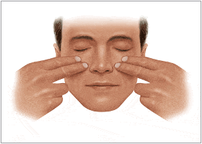 Step 1. Place two fingertips on your cheeks, on each side of your nose.