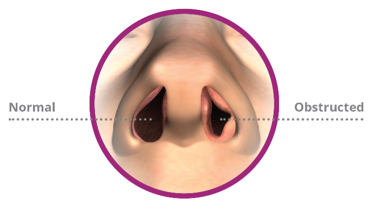 Many people with nasal obstruction experience difficulty breathing through their nose, habitual snoring, interrupted sleep and fatigue.